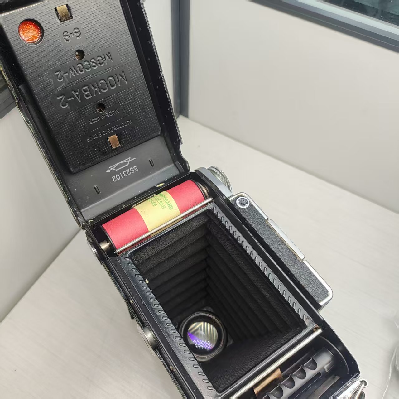 莫斯科2 折叠120胶片机 机器成色一般 功能正常 快门变化有序 镜头无霉无雾 后镜片边缘一点点划 调焦光圈顺畅 黄斑清晰 对焦重合 内带一个拍完的卷 0元起拍 得拍顺丰到付